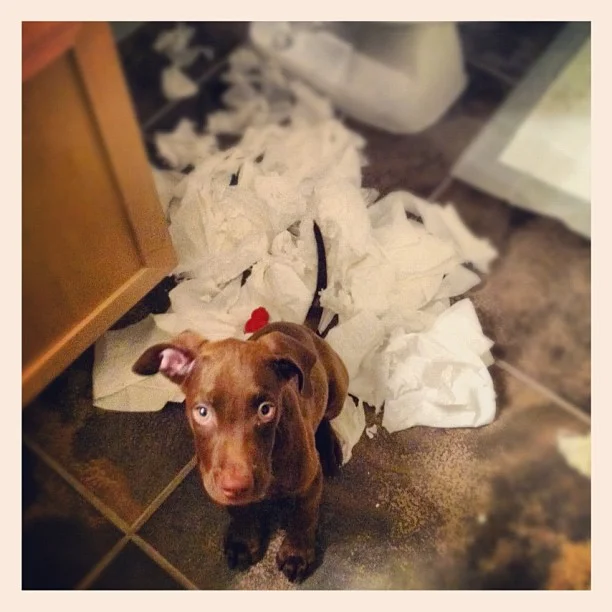 August 13, 2012 August 13, 2012/ Jay Stewart Leroy’s guilty face. #puppy #destruction #toiletpaper #cute #sierra #austin #pottytraining (Taken with Instagram)