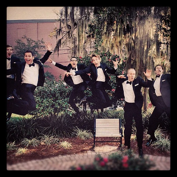 The mad up’s of @caseysapp w/ @arbraun @michaelbunbun @thatcliffguy #sutro #jumping #wedding #tux #groomsmen (Taken with Instagram at Bloxham Park)